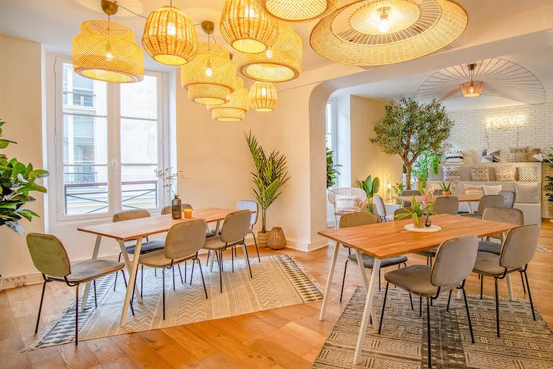 Chaque pièce a été travaillée dans un univers reposant : une salle à manger entre bois naturel et plantes tombantes, un salon intimiste cosy et un espace de travail bohème où toute votre créativité sera sublimée (5 salles de sous-commission).