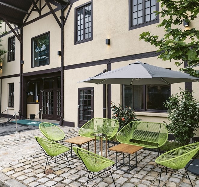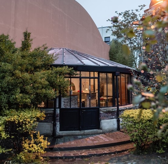 L’Usine Té est une ancienne manufacture restaurée. Les éléments historiques de la structure ont été préservés afin de conserver son style industriel (verrières, poutres apparentes et structures métalliques), l’ajout d’une décoration végétale riche et luxuriante (terrasses arborées et structures végétales) vient parfaire l’atmosphère atypique qui s’en dégage.