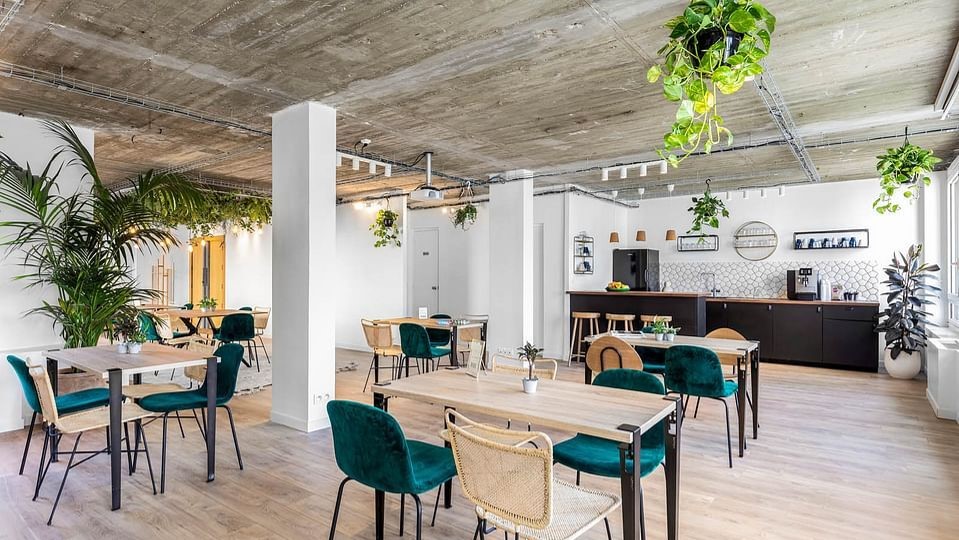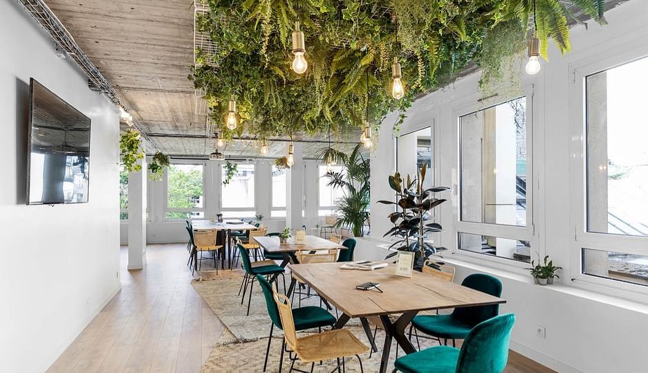 La jungle. Vue Tour Eiffel. Une végétation luxuriante jusqu’au plafond, une décoration mêlant arts ethniques et mobilier moderne dans un espace calme et lumineux, donnant sur un parc arboré pour organiser vos événements d’entreprise, vos réunions et vos séminaires.