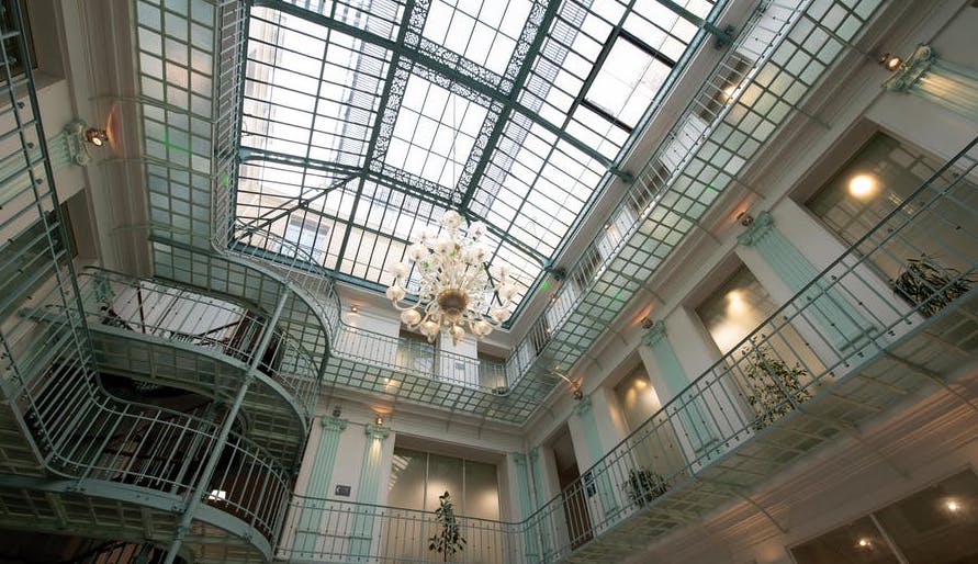 L’effet Wow de la Verrière ! L’Espace Cléry est un ancien hôtel particulier, illuminé d’une magnifique verrière de style Eiffel, qui assure une lumière naturelle zénithale. Il propose un espace de 200 m2 pour vos réceptions et conférences, ainsi que 20 salles climatisées distribuées sur 3 étages.