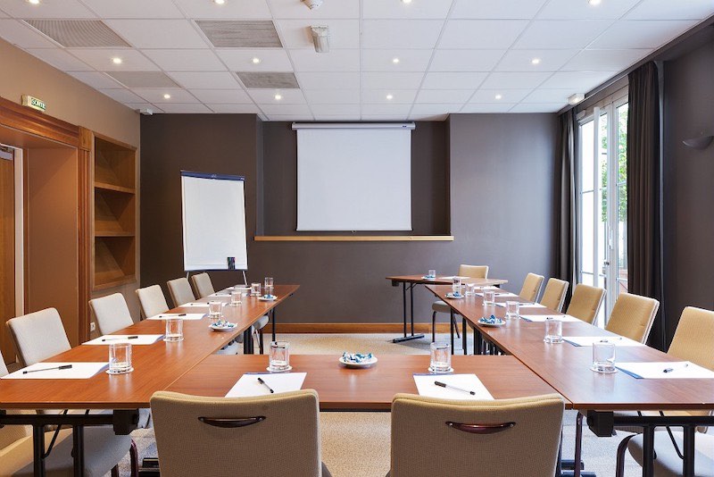 Toutes les salles et salons sont climatisés et insonorisés et trois des salles de l’hôtel sont orientées vers le jardin intérieur ou la terrasse.