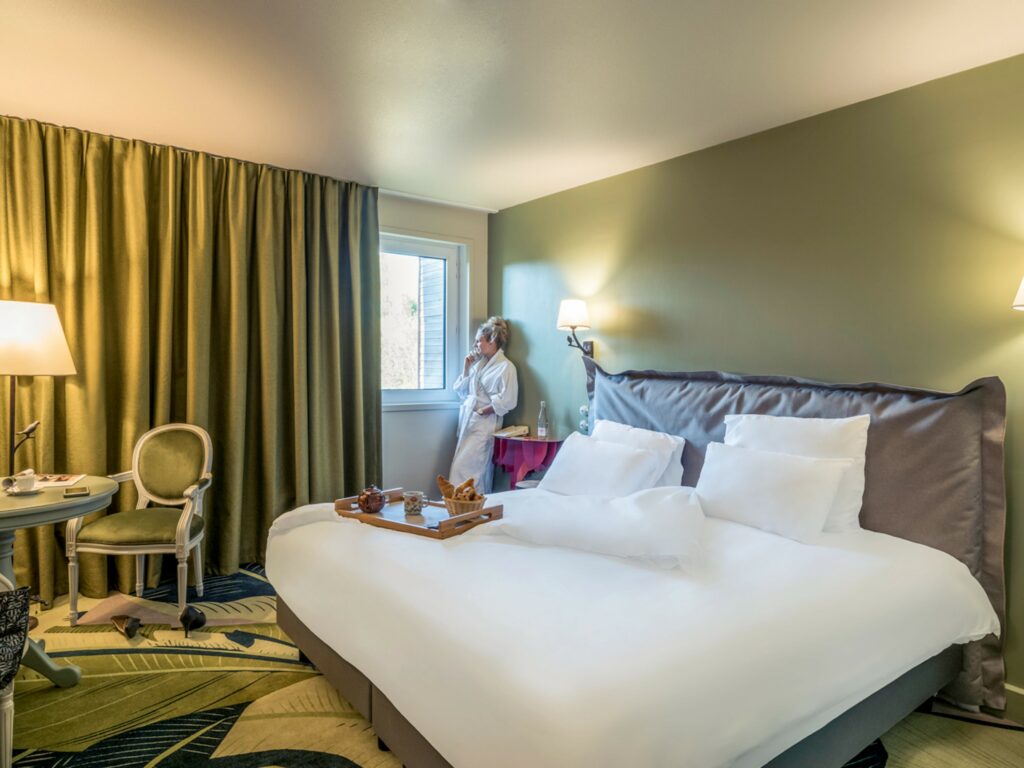 Au coeur de notre château, notre nouveau Spa Deep Nature vous attend dans un ilot de calme dédié à la relaxation. 5 cabines de soins à la lumière du jour, un bassin de nage à contre-courant, sauna, hammam et douches sensorielles compléteront votre expérience bien-être. Pour les plus sportifs, nos 7 parcours accrobranche vous surprendront entre prise de hauteur et sensations sur nos nombreuses tyroliennes. Notre hôtel est le lieu parfait pour un week end au vert aux portes de Paris !