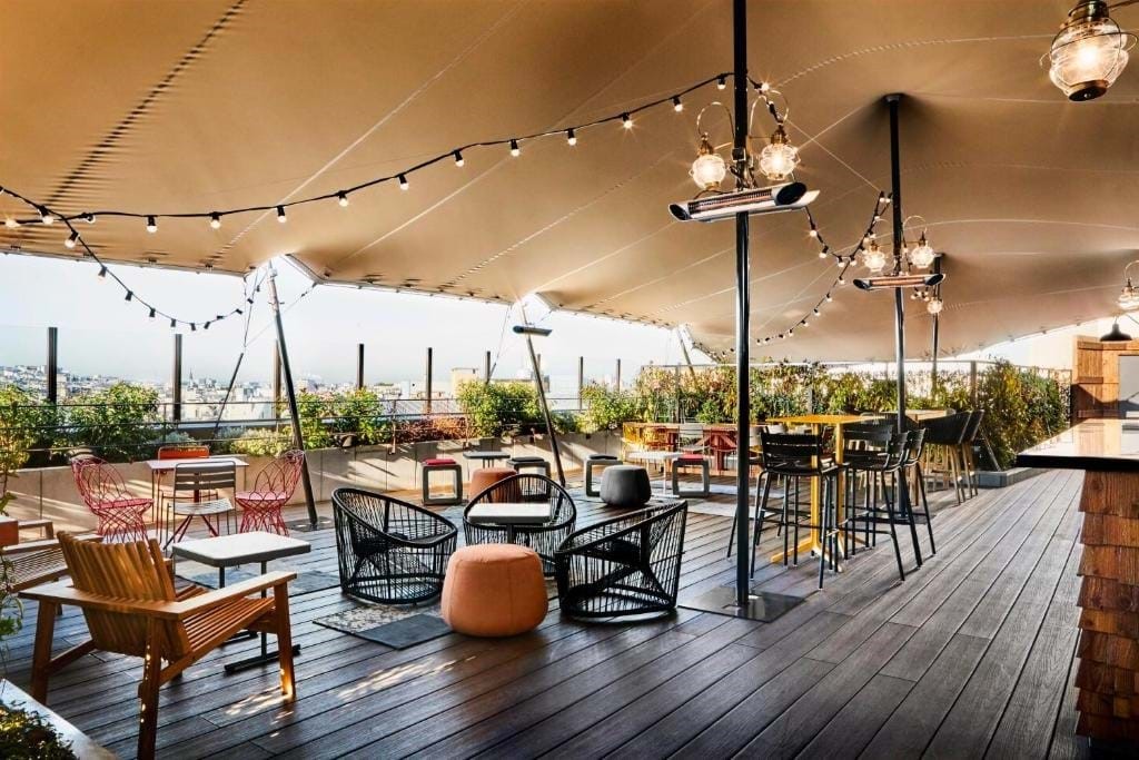 Au rez-de-chaussée se trouve la cantine du Café Fabien et sa véranda avec vue sur le jardin. Un escalier en colimaçon mène vers Le Club et ses voûtes inspirées du métro parisien. Montez au 9ème étage et découvrez Khayma Rooftop Bar et sa vue imprenable sur le Sacré-Cœur et Montmartre. Venez vivre une expérience typiquement parisienne dans notre hostel