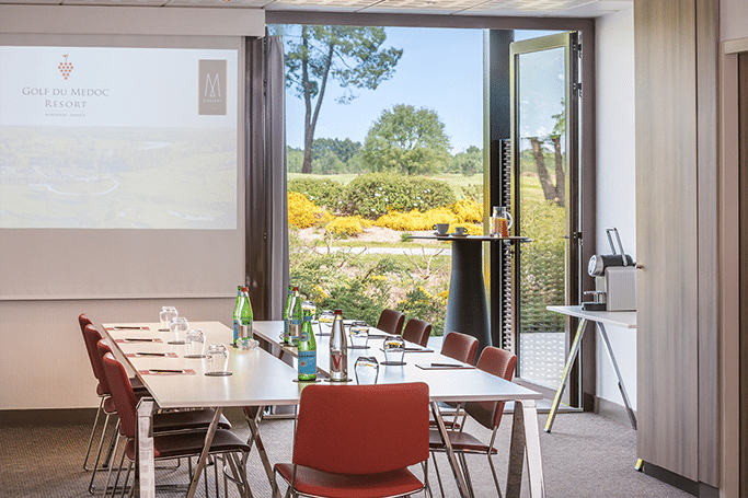 Séminaire entreprise, journée d’étude, salles de réunion, activité team building… Le Golf du Médoc Resort peut accueillir tous vos événements et propose de nombreux équipements et animations : piscine, cours d’initiation golf, soins et massages, dégustation gastronomique…