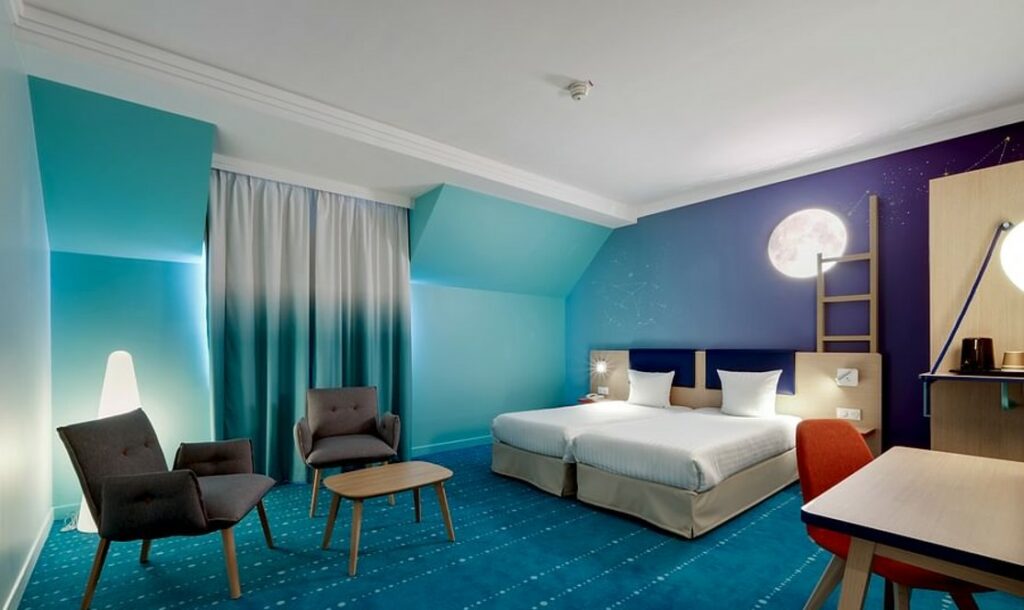 Le Grand Magic Hotel vous invite à vivre une expérience immersive unique. Vous pénétrez dans des mondes fantastiques qui impressionnent les plus petits comme les plus grands ! Vous voyagez dans les étoiles à travers les 396 chambres disponibles. L’hôtel fait partie de la zone du Val de France, desservi par des navettes gratuites qui vous conduisent en un instant à la gare de Marne-la-Vallée Chessy (gare RER et TGV), aux Parcs Disney® et à Disney Village.