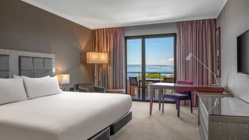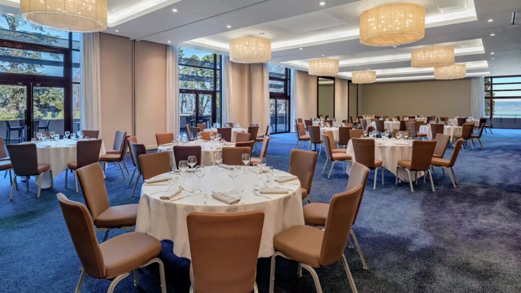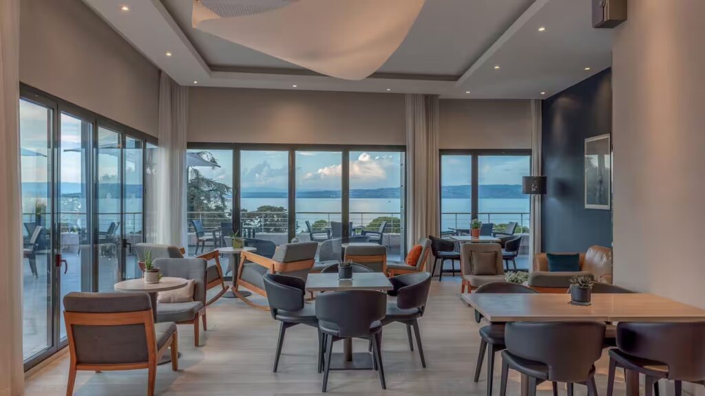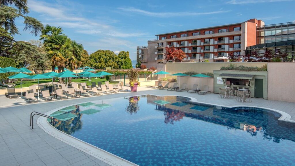 Notre hôtel est situé sur les rives du lac Léman, au pied des Alpes françaises. Il se trouve à seulement 800 mètres des principales attractions du centre d’Évian-les-Bains.