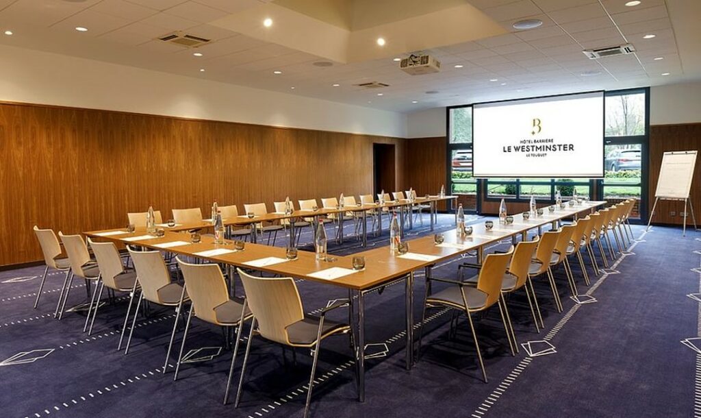 Cocktails, banquets, mariages, dîners de gala, séminaires, conférences, rallyes automobiles, lancements de produits… Vos manifestations se parent d’un éclat particulier à l'Hôtel Barrière Le Westminster. Dans un cadre sécurisé et à 15 minutes à pied de la superbe plage du Touquet, dix salles modulables entièrement rénovées, de 20 à 350 m2, sont à votre disposition pour des événements d’exception. Salles et salons équipés, dont 4 entièrement modulables, s’adaptent à vos besoins pour recevoir de 10 à 230 personnes. Avec ses 104 Chambres et Suites élégantes, son Spa Nuxe et ses menus bistronomiques conçus par le Chef étoilé William Elliott, l'hôtel associe en même lieu plaisirs des sens et séjours studieux.
