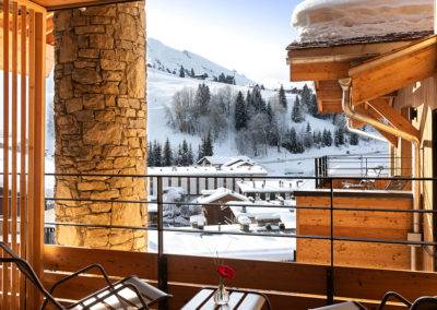 Chacune est différente et se transforme en cocon douillet, avec vue sur les montagnes ou sur le cœur du village de La Clusaz. Résolument modernes, les boiseries claires sont soulignées par les têtes de lit en cuir, le parquet en chêne et le marbre parant la salle de bain.