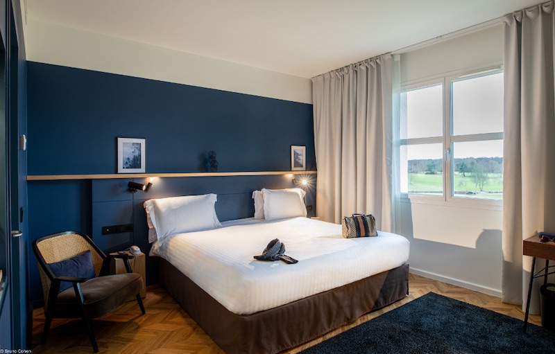 Venez découvrir ou redécouvrir le Salon avec sa bibliothèque, le Bar – club à l’anglaise, le Restaurant panoramique et sa terrasse, les espaces travail & loisirs, avec vue sur le golf et la nature