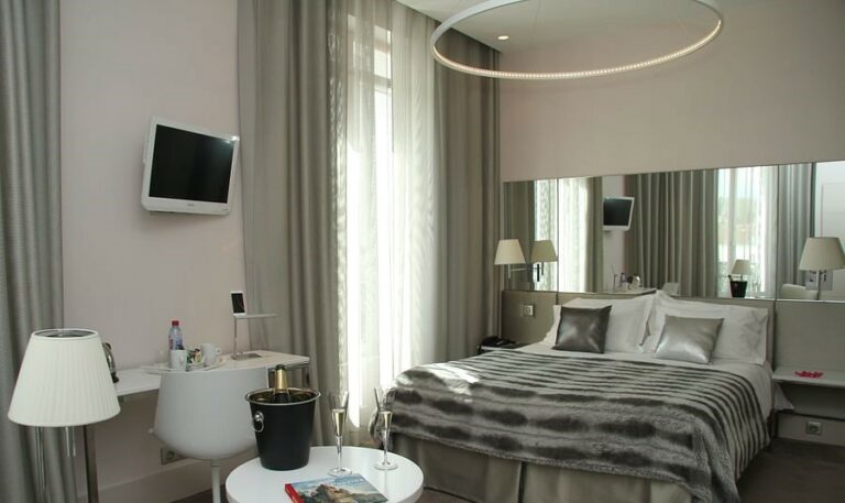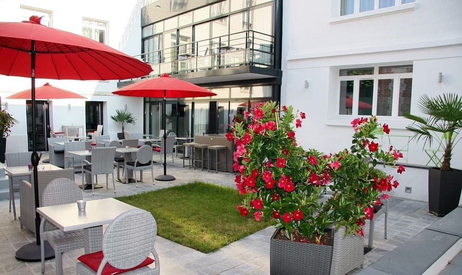 Hôtel “design” idéalement situé au coeur de la cité médiévale dans un endroit calme face à l’église Sainte Croix à quelques pas de la gare, des restaurants, des rues commerçantes, du marché, de la Roseraie classée jardin remarquable et du Centre Aquatique.