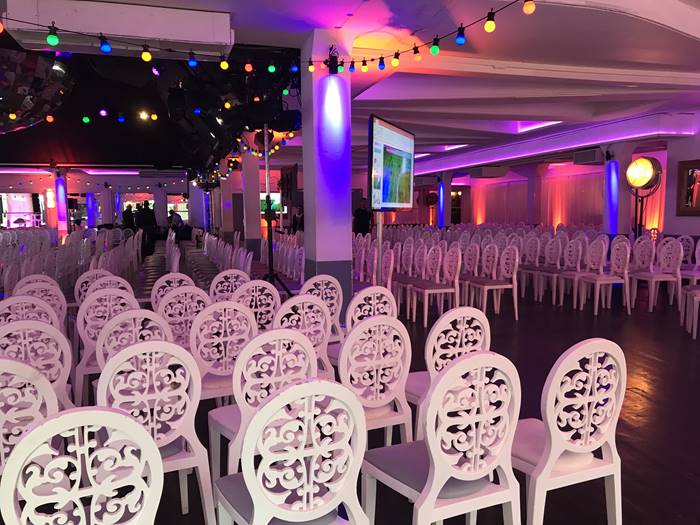 En son centre, une monumentale boule à facette de trois tonnes, pièce unique signée Philippe Starck fait office de figure emblématique de la maison.