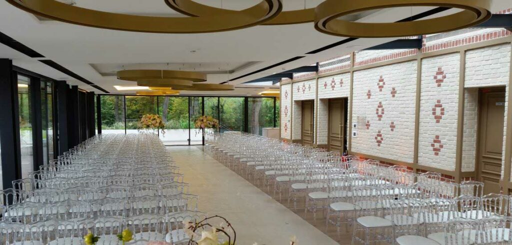 Le Pavillon Royal organise toutes les étapes de votre réception, mettant à disposition ses différents espaces, répartis sur 5 hectares de terrains verdoyants. Le Pavillon Royal se compose de 3 espaces distincts, avec des surfaces entièrement modulables de 100 à 450m2, ainsi que 800m2 de terrasses.