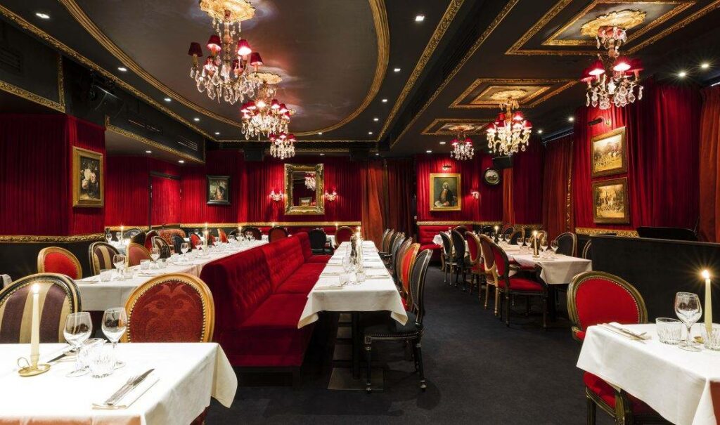 Une atmosphère feutrée, des banquettes en velours rouge et une lumière tamisée rehaussée par celle des chandelles qui garantissent au plumage des oiseaux de nuits un confort absolu.