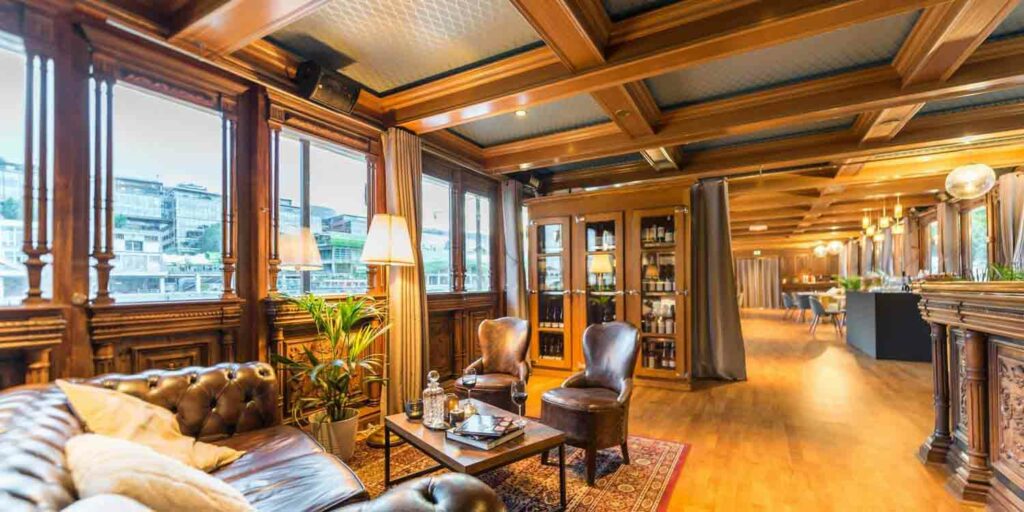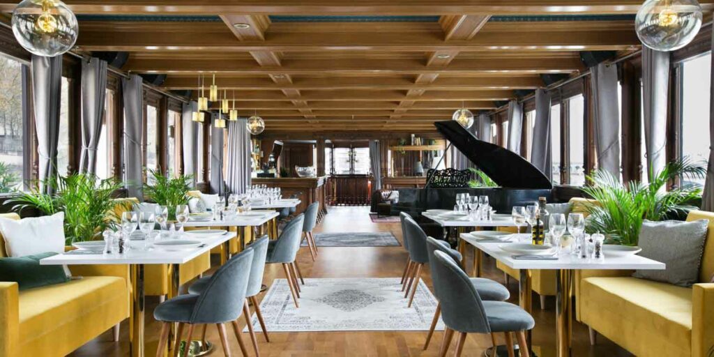 • un restaurant à l’atmosphère chaleureuse et boisée,
