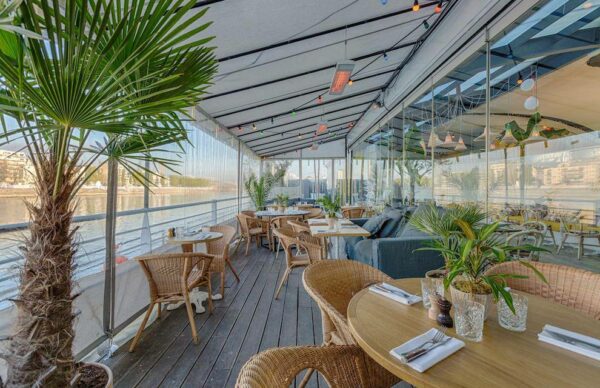 Installé sur une péniche de 600 m2 sur les bords de Seine, à proximité du 17ème arrondissement, Polpo est un lieu unique et atypique. Cette barge à quai dispose d'une large terrasse avec une vue panoramique sur la Seine. La décoration végétale est reposante et dépaysante.