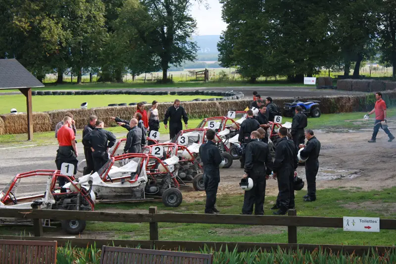 Vous participerez à une course d’endurance par équipe en Kart Cross. Cette activité présente l’avantage d’être exceptionnelle (car très peu de pistes existent en France) et de vous proposer des sensations de pilotage hors du commun (dérapages et contre braquages sont au programme) et cela en toute sécurité !
