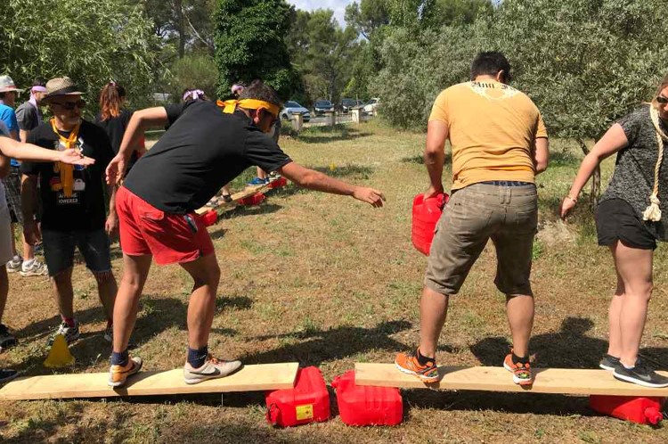 Ce team building olympiades, proposé sur une demi-journée généralement, a du rythme ! En effet, nous l’organisons sous la forme d’un tournoi lors duquel les équipes se défient sur différentes petites épreuves. Du reste nous vous proposons de constituer vos équipes en amont, selon vos objectifs managériaux, ou en aléatoire par notre agence. Chacun des ateliers sera encadré par un animateur. C’est lui qui mettra donc en place une vraie dynamique pour renforcer la cohésion d’équipe.