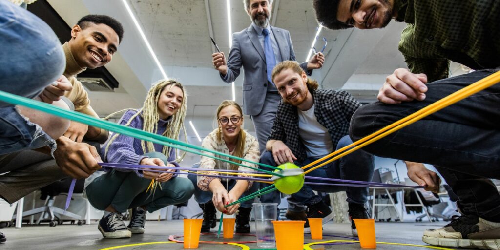 Cette animation team building dynamique propose d’enchaîner en équipe plusieurs épreuves ludiques pour lesquelles la cohésion est primordiale. En effet, chacune d’elles est conçue pour solliciter les aptitudes de tous les membres de l’équipe. La communication ainsi que l’écoute des autres seront nécessaires pour réussir au mieux les épreuves.