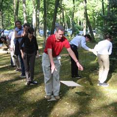• Parcours du funambule : A l’aide de rondins de bois et de planches, l’équipe devra passer d’un bout à l’autre.